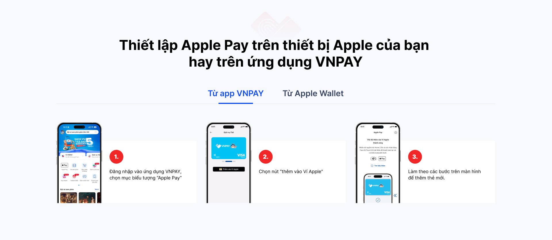 Từ 17/07/2025, thẻ Visa VNPAY chính thức tích hợp Apple Pay trực tiếp trên ứng dụng VNPAY, Khách hàng giờ đây có thể trải nghiệm thanh toán mua sắm - di chuyển tiện lợi và nhanh chóng hơn mà không cần thẻ vật lý, ví hay mở ứng dụng.