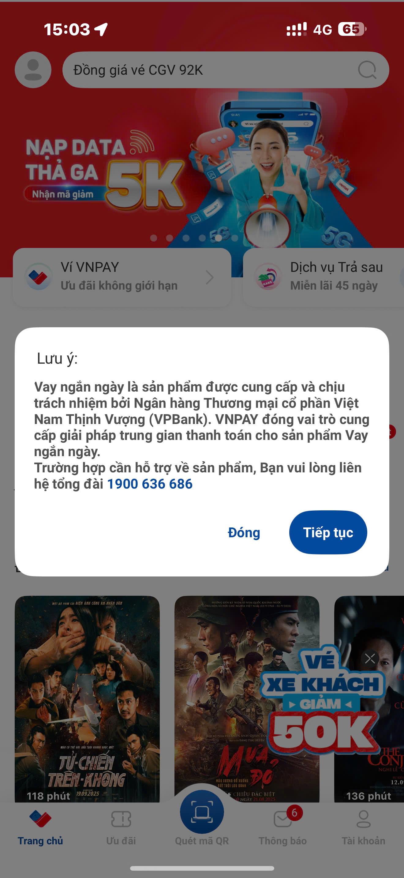 Khách hàng vào tính năng Vay ngắn ngày trên Ứng dụng VNPAY để xem thông tin khoản Vay đã đăng ký thành công
