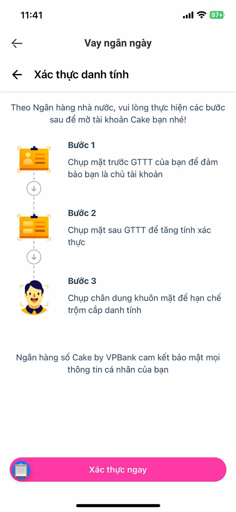 Đọc thông tin các bước xác thực, nhấn Xác thực ngay