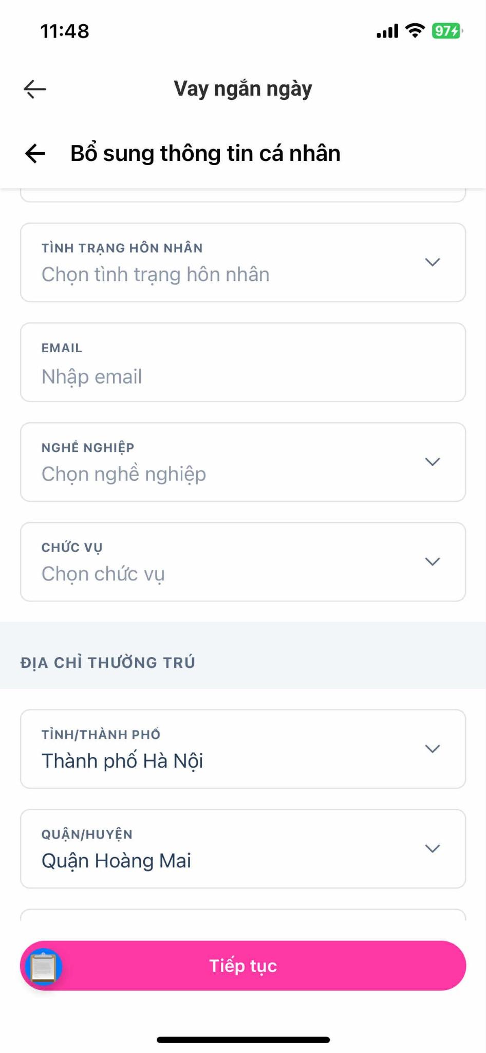 Đọc và bổ sung thông tin còn thiếu, nhấn Tiếp tục