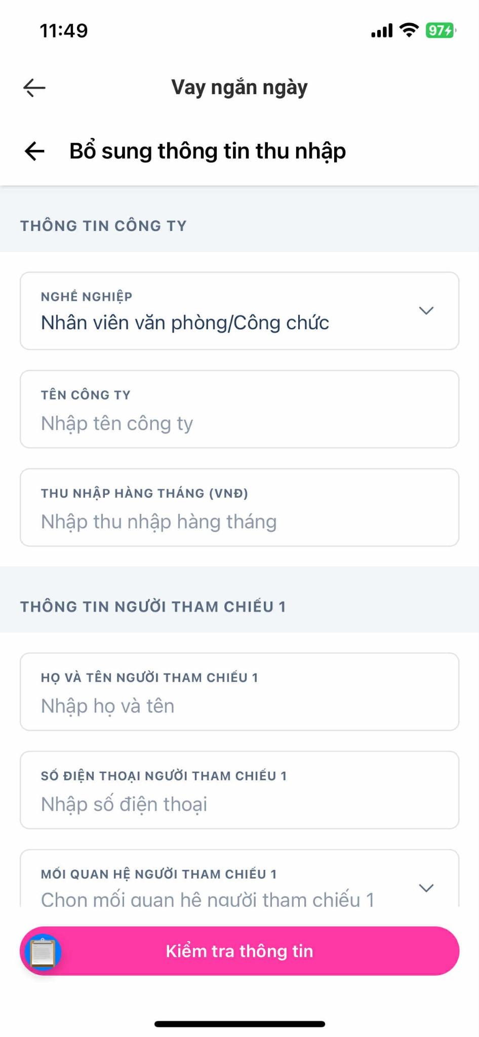 Điền các thông tin theo yêu cầu, nhấn Kiểm tra thông tin