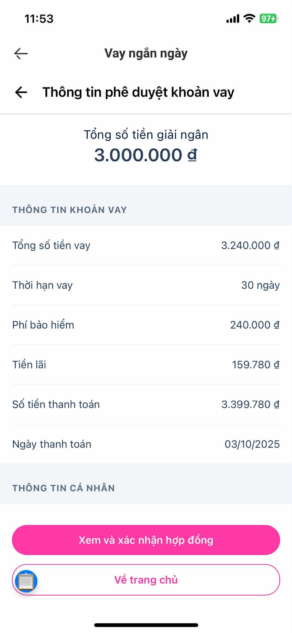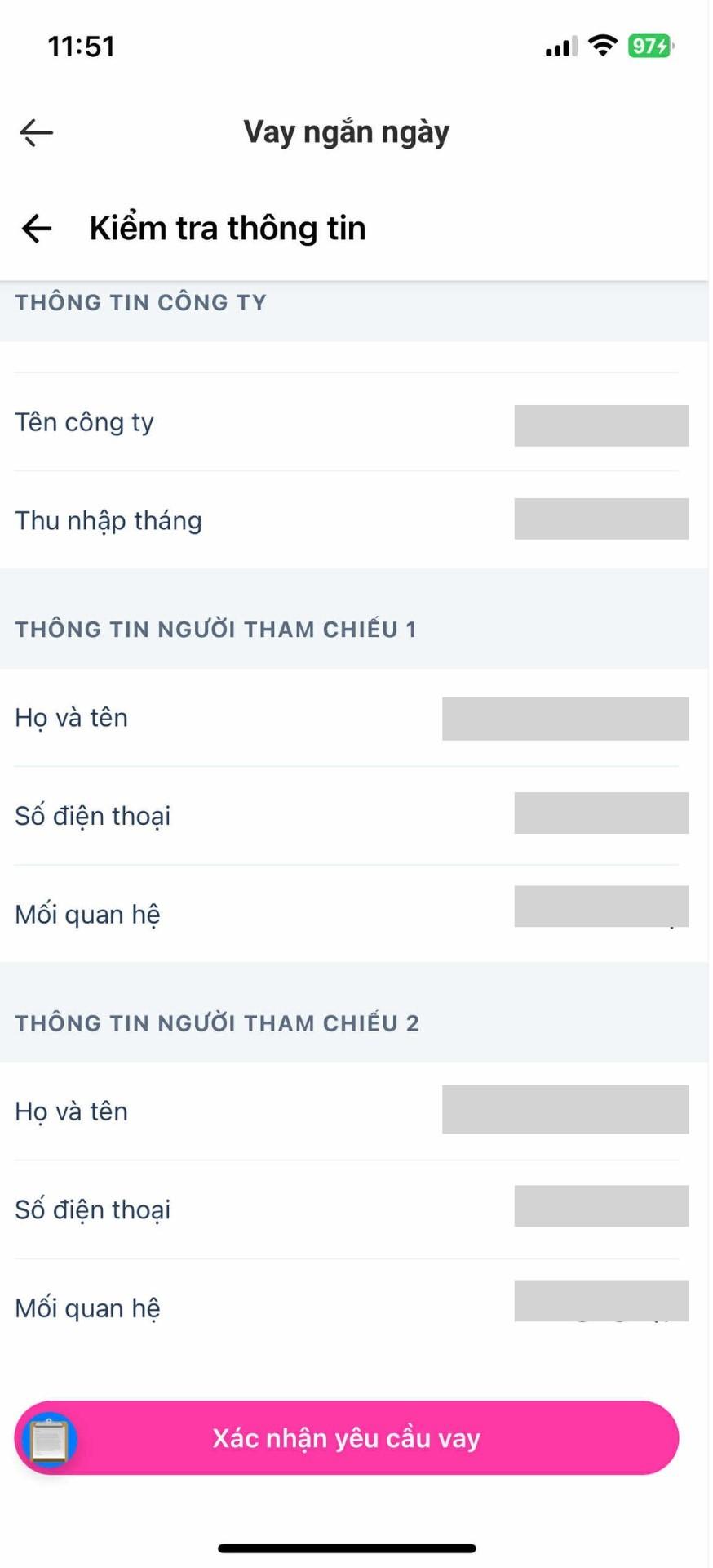 Kiểm tra lại các thông tin đăng ký, nhấn Xác nhận yêu cầu vay