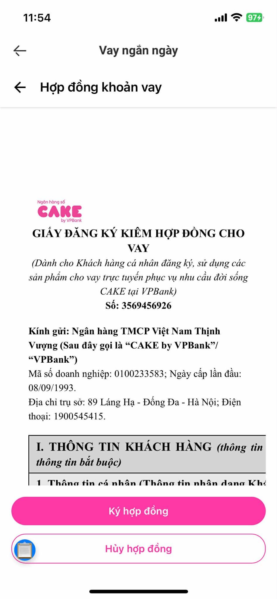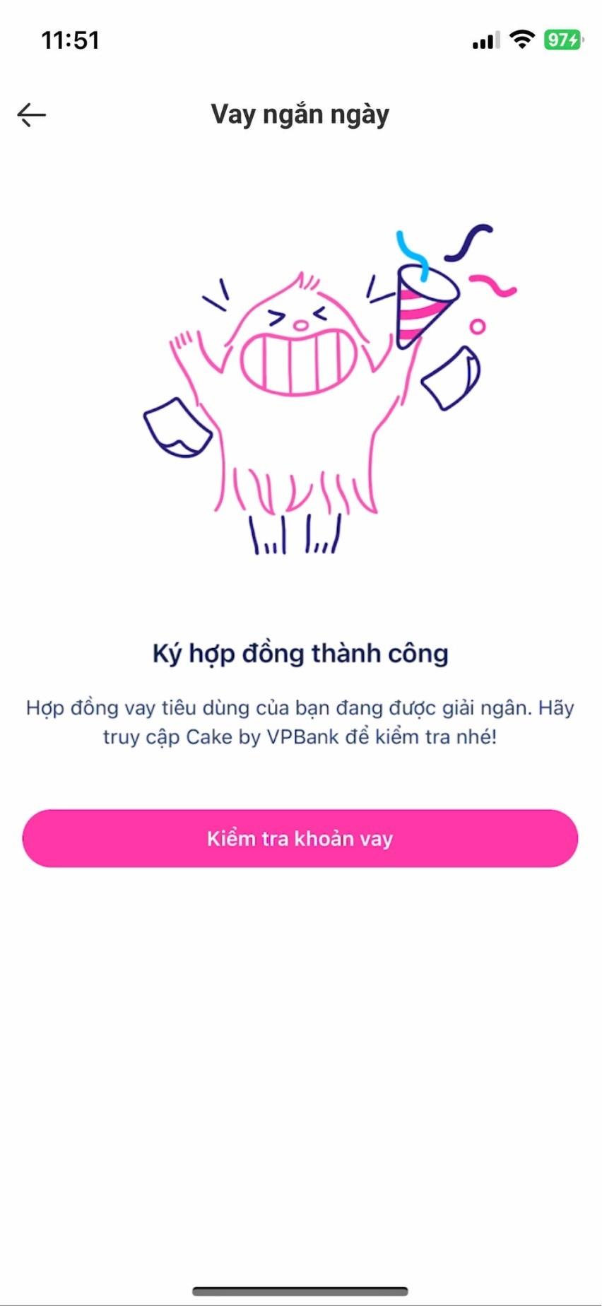 Lưu ý: Sau khi ký hợp đồng thành công, Ví của khách hàng sẽ nhận được thông báo cộng số tiền đã giải ngân vào số dư Ví