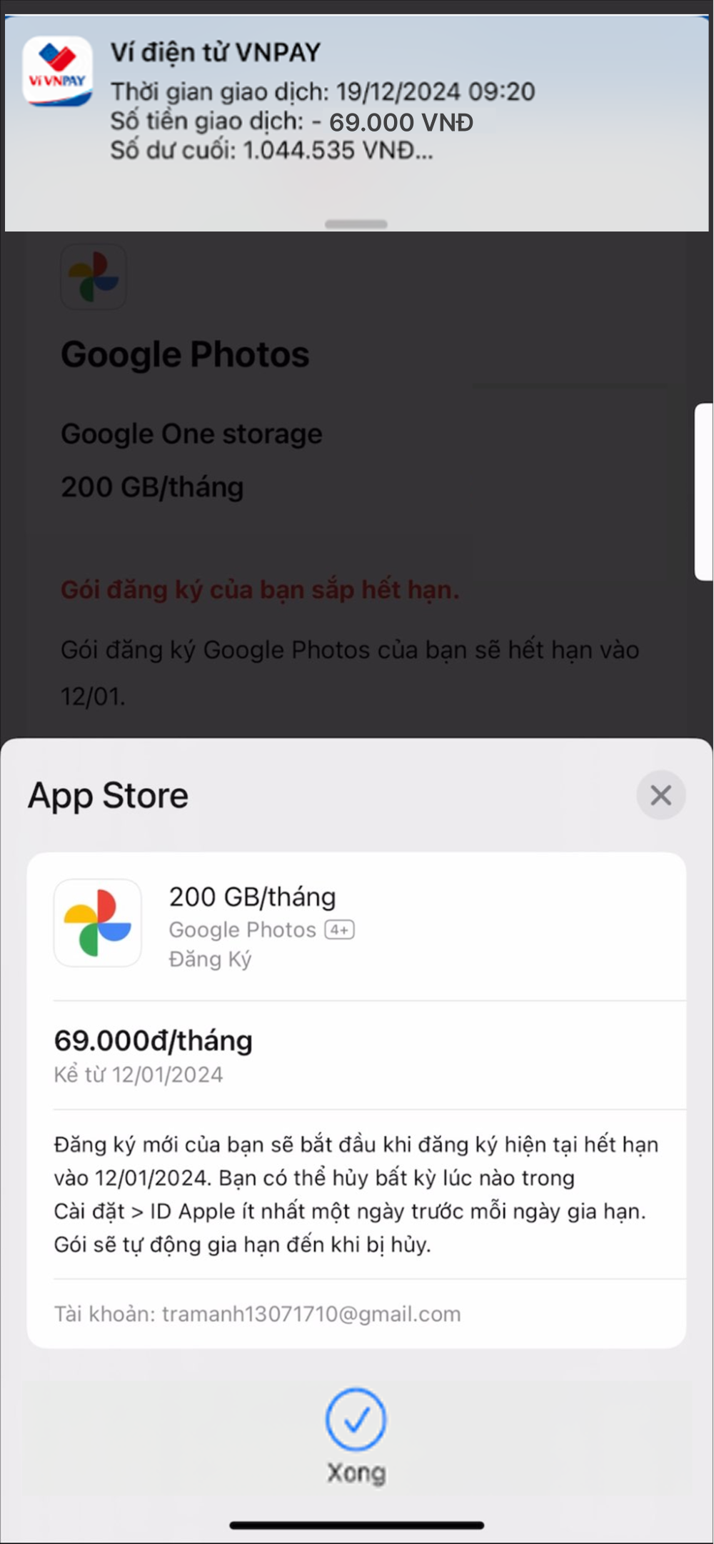 VNPAY nhận yêu cầu và xử lý trừ tiền trong Ví của khách hàng, sau đó gửi OTT thông báo giao dịch trừ số dư Ví.