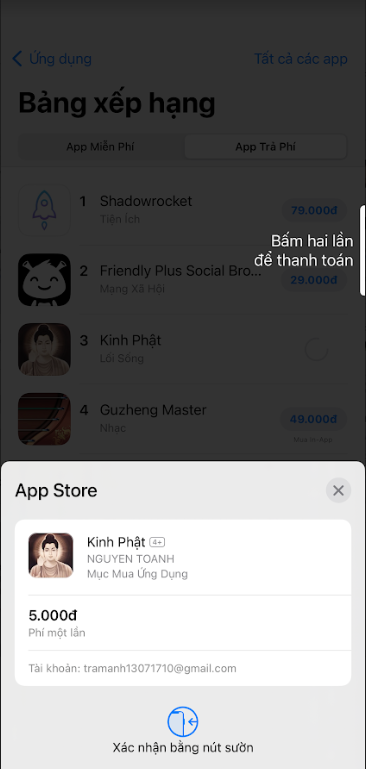 Bước 1: Khách hàng chọn sản phẩm, dịch vụ cần mua trên Apple Services, sau đó xác thực mua hàng bằng Face ID hoặc dùng mật khẩu iCloud.